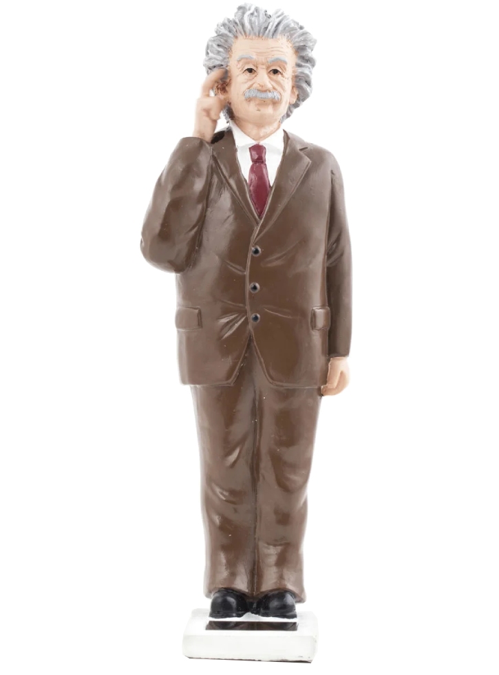 Baza pe care sta Einstein este inscripționată cu E=MC pătrat iar acesta isi bate cu degetul tampla indicand tuturor ideea de a gandi.