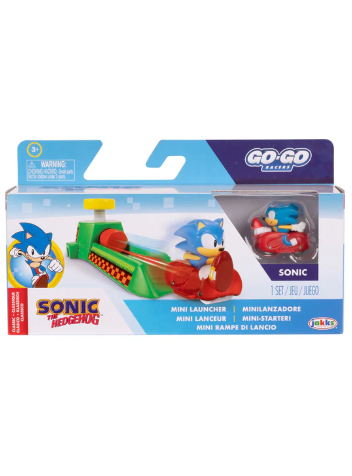 Vă prezentăm Sonic Go-Go Racers! Folosește mini-lansatorul pentru a-l trimite pe Sonic în viteză spre ținta inclusă.