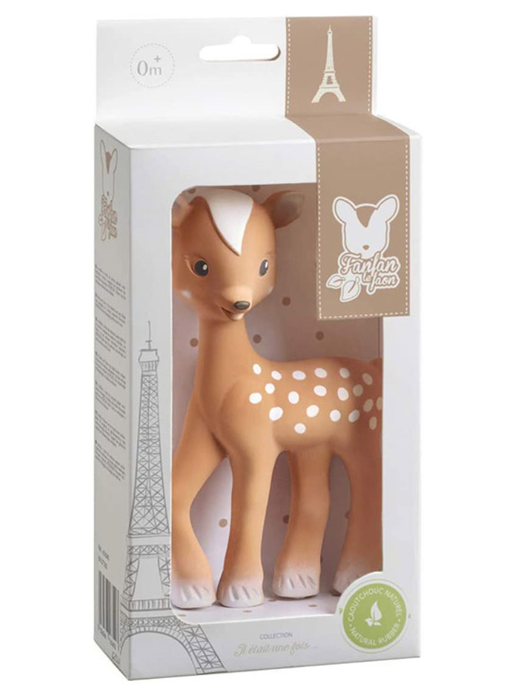 Foarte ușor, potrivit pentru mânuțele mici și din cauciuc 100% natural, Fanfan va deveni puiul de căprioară preferat al bebelușului dumneavoastră și îl va diferenția rapid de celelalte jucării ale sale!
