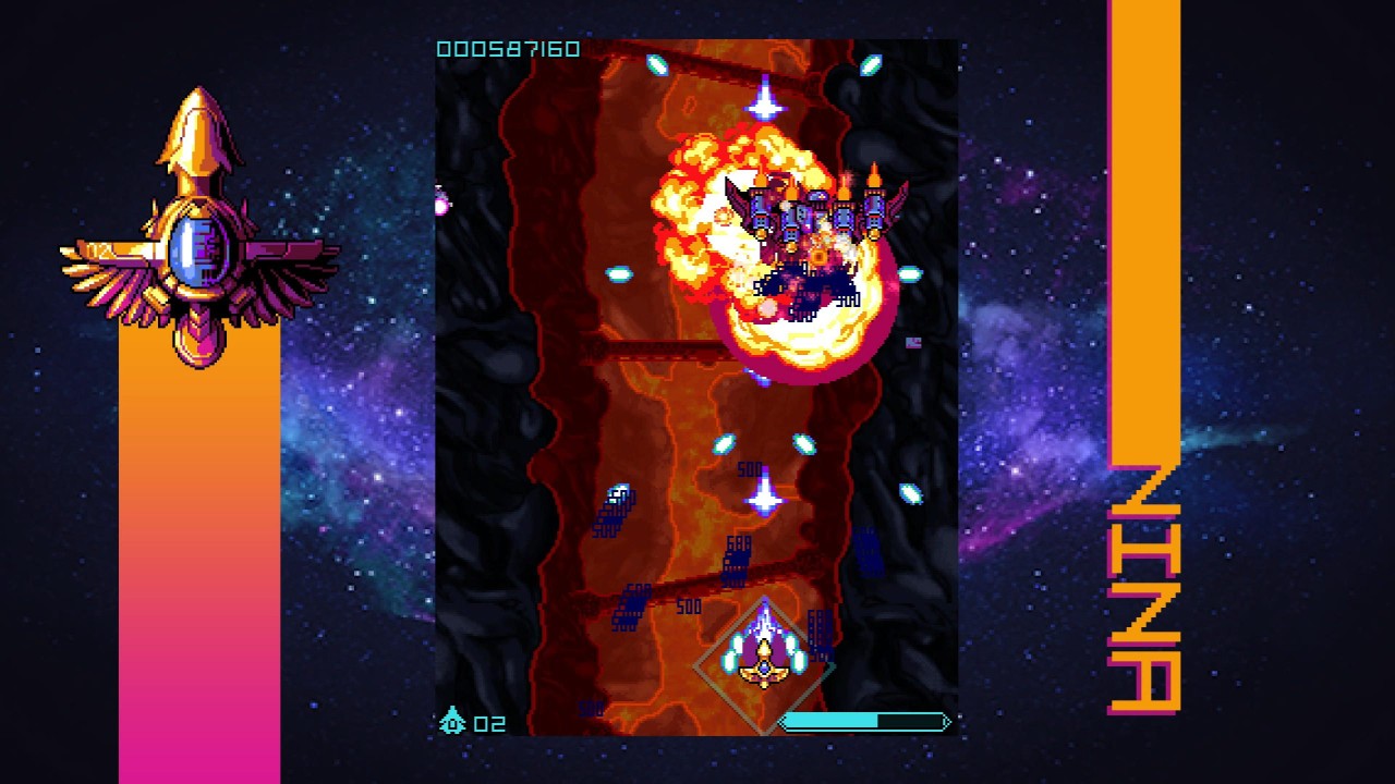 - 9 ships to choose from, each with a different main weapon, sub-weapon and teleport;