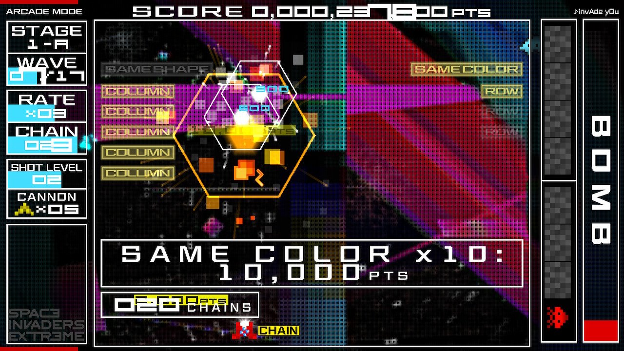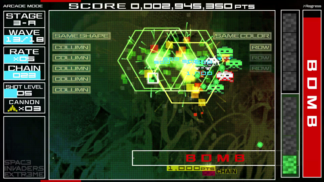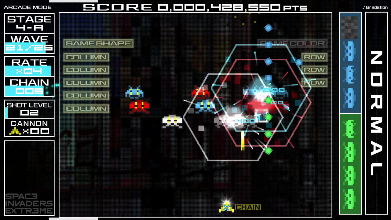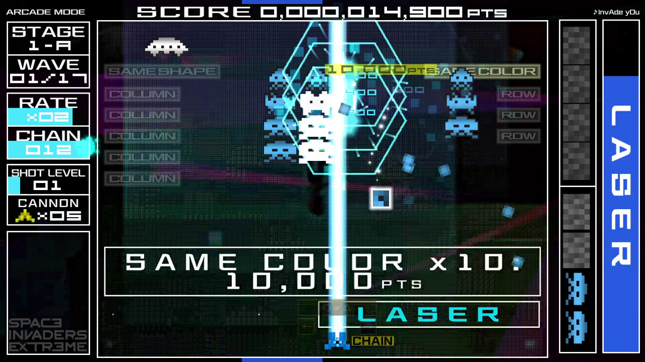 SPACE INVADERS EXTREME vine cu 16 etape, pline de invadatori diabolici și lupte diabolice cu șefii. Exersează etapele individuale în Free Play, apoi crește-ți scorul la noi înălțimi în Arcade Mode! Poți găsi toate bonusurile nenumărate și ascunse?