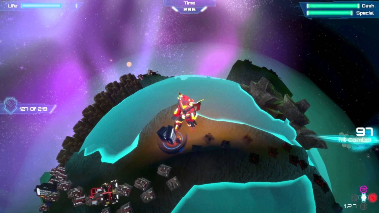 Distrugeți forțe planetare întregi, distrugeți orașe și luptați cu șefi în timp ce căutați să eliminați din univers orice existență a rudelor lui Kesedihan.