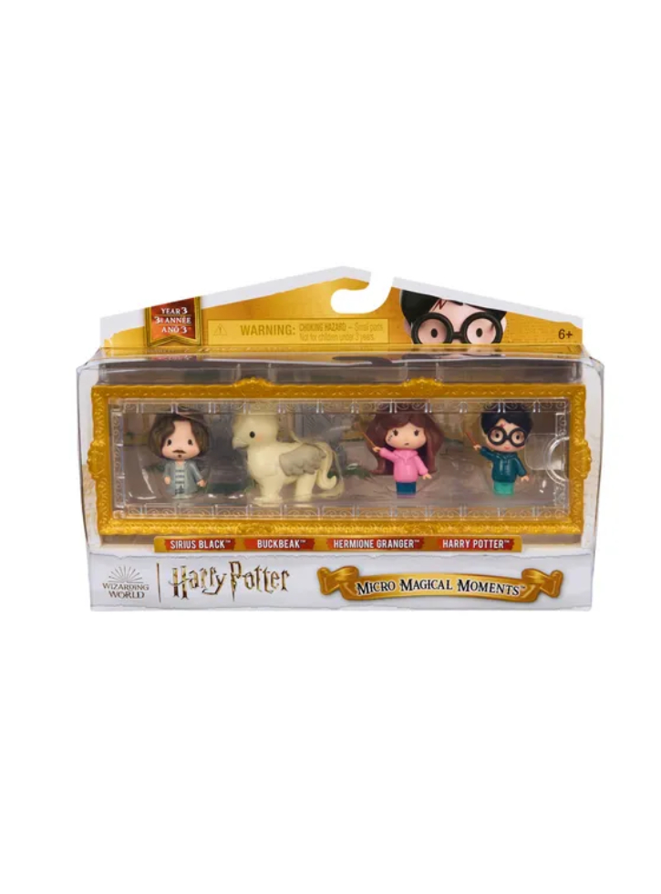 Discover the figures of Harry Potter, Hermione Granger, Sirius Black and Buckbeak, a transparent display case and 4 stands.