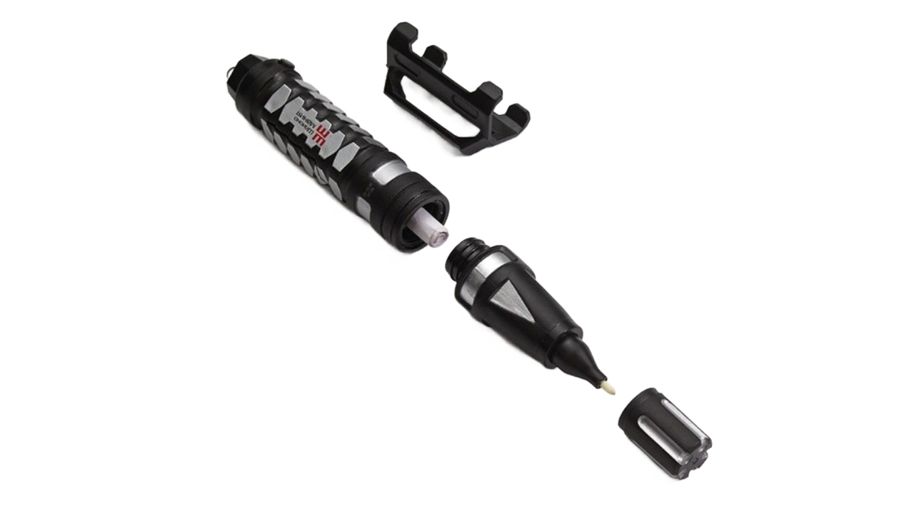 The pen is equipped with invisible ink that cannot be seen with the naked eye. Messages written with this pen remain hidden until exposed to a special light source.