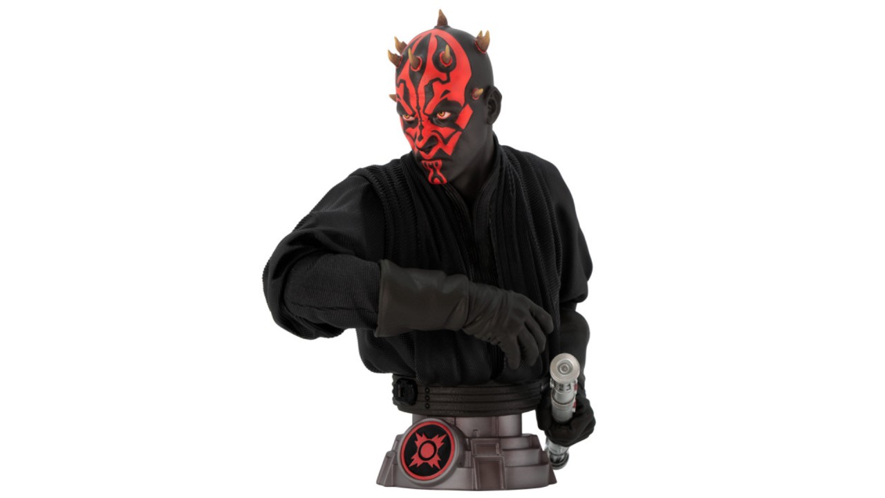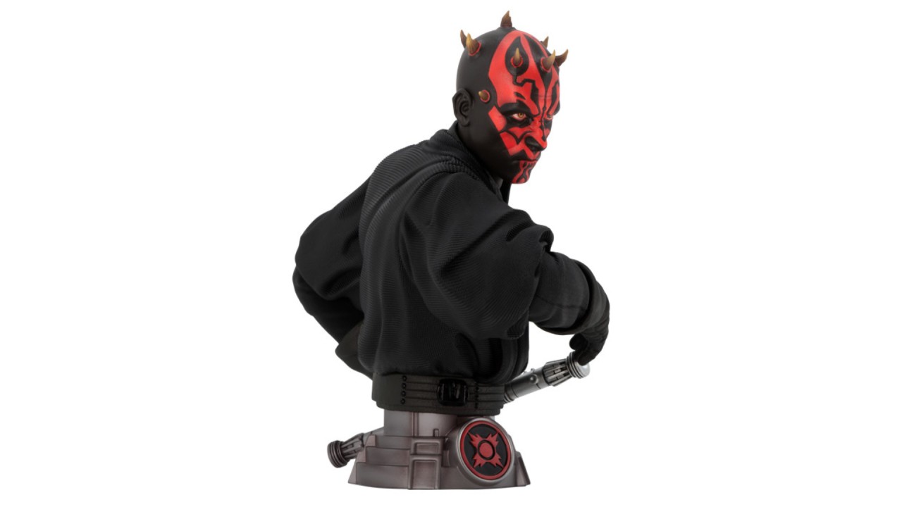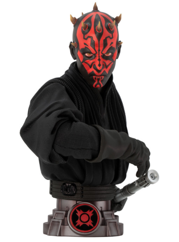 Star Wars Buste Darth Maul 15cm este o figurină de colecție reprezentându-l pe celebrul Sith, Darth Maul, din Star Wars, într-un format de buste.