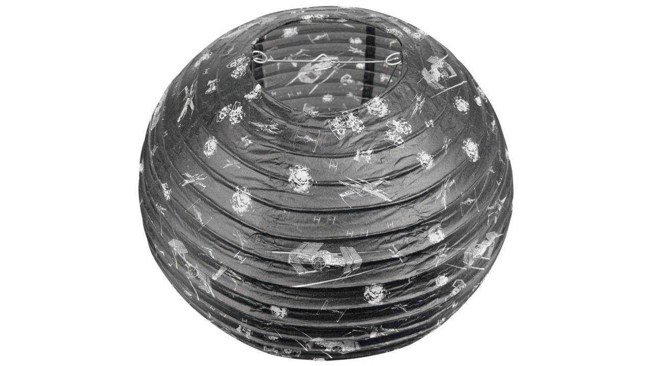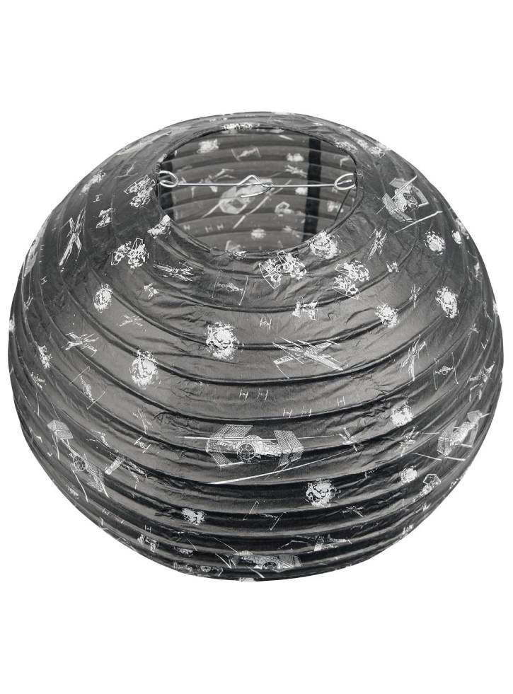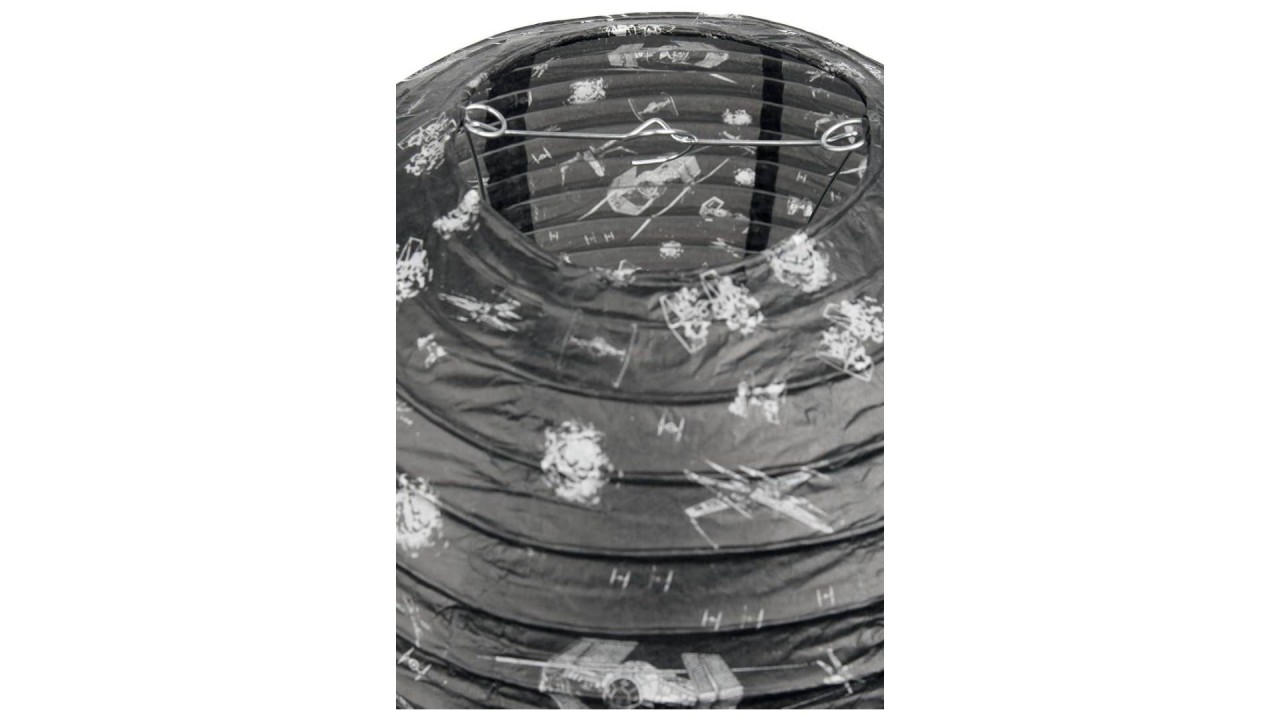 Abajurul sferic înfățișează nave de luptă Tie Fighters și X-Wings implicate într-o bătălie epică.