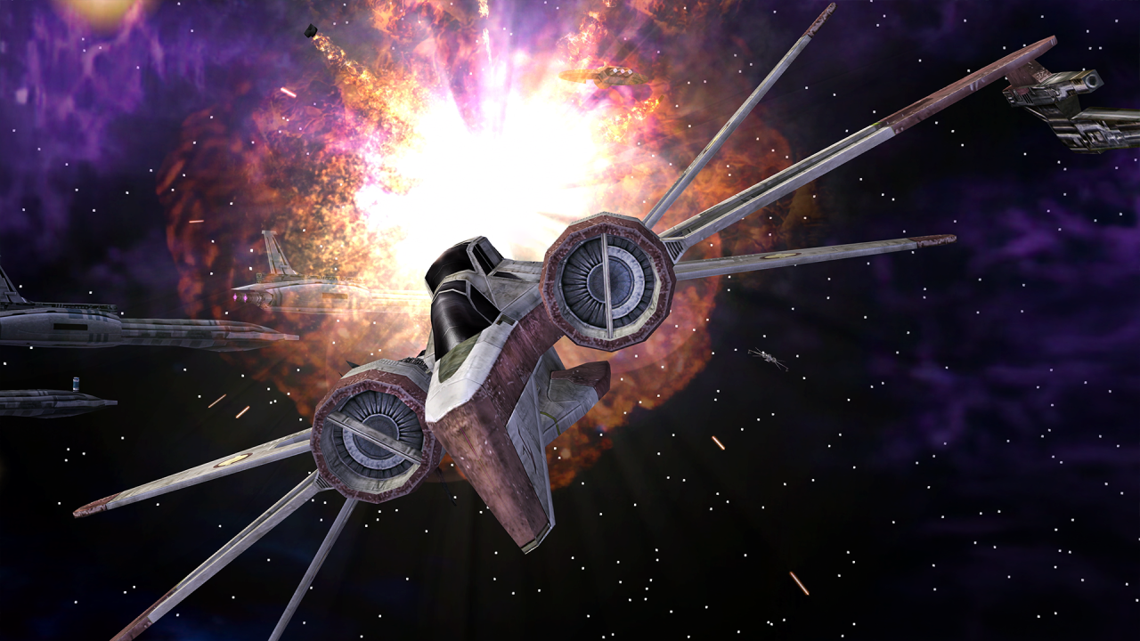 - Pilot legendary starships: TIE fighters, X-wings, and more in space and air dogfights