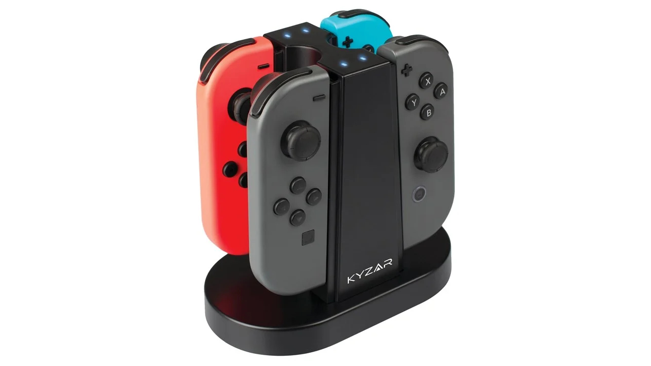 Păstrează-ți controllerele Joy-Con pentru Nintendo Switch complet încărcate cu stația de încărcare Quad Charging Station elegantă de la Kyzar.
