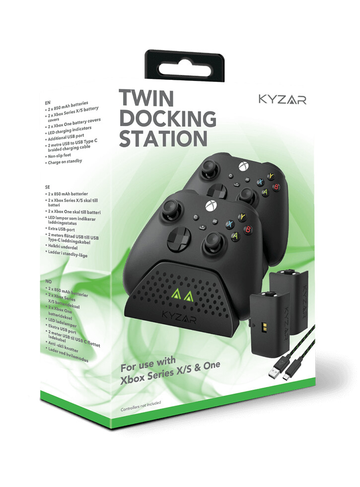 Kyzar Twin Docking Station este o stație de încărcare pentru două controlere de jocuri Xbox Series X/S si Xbox One.