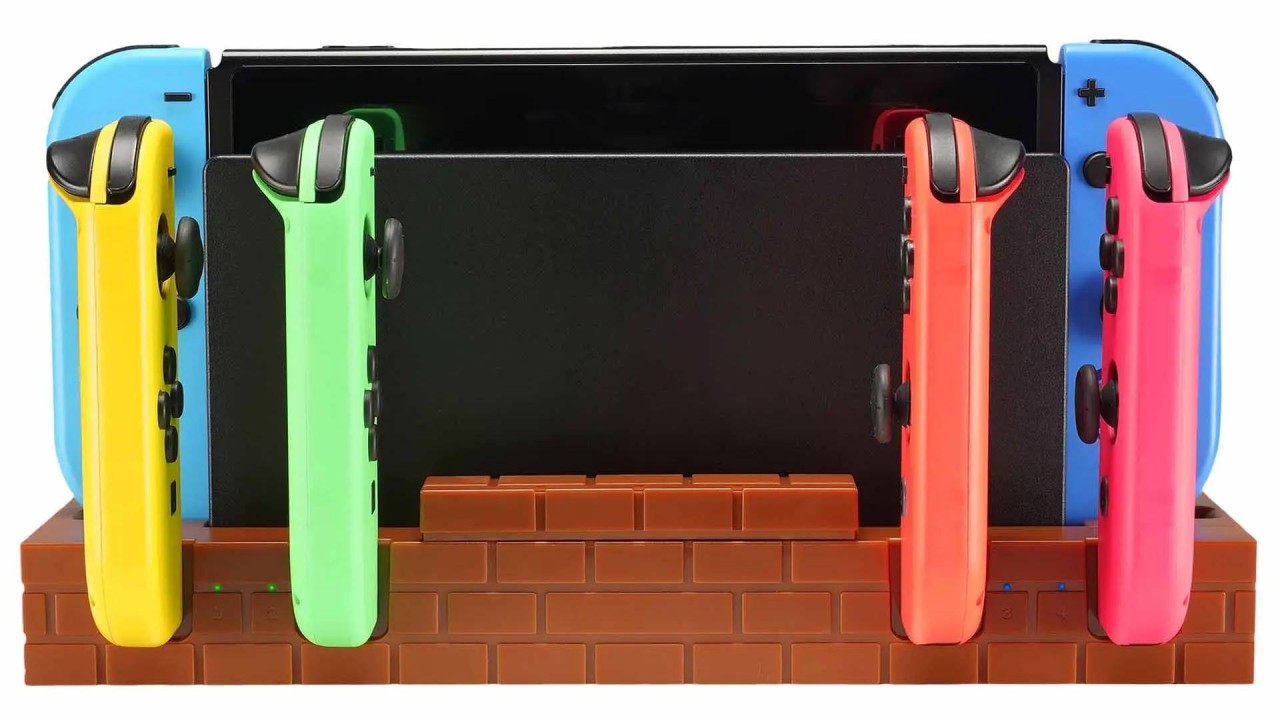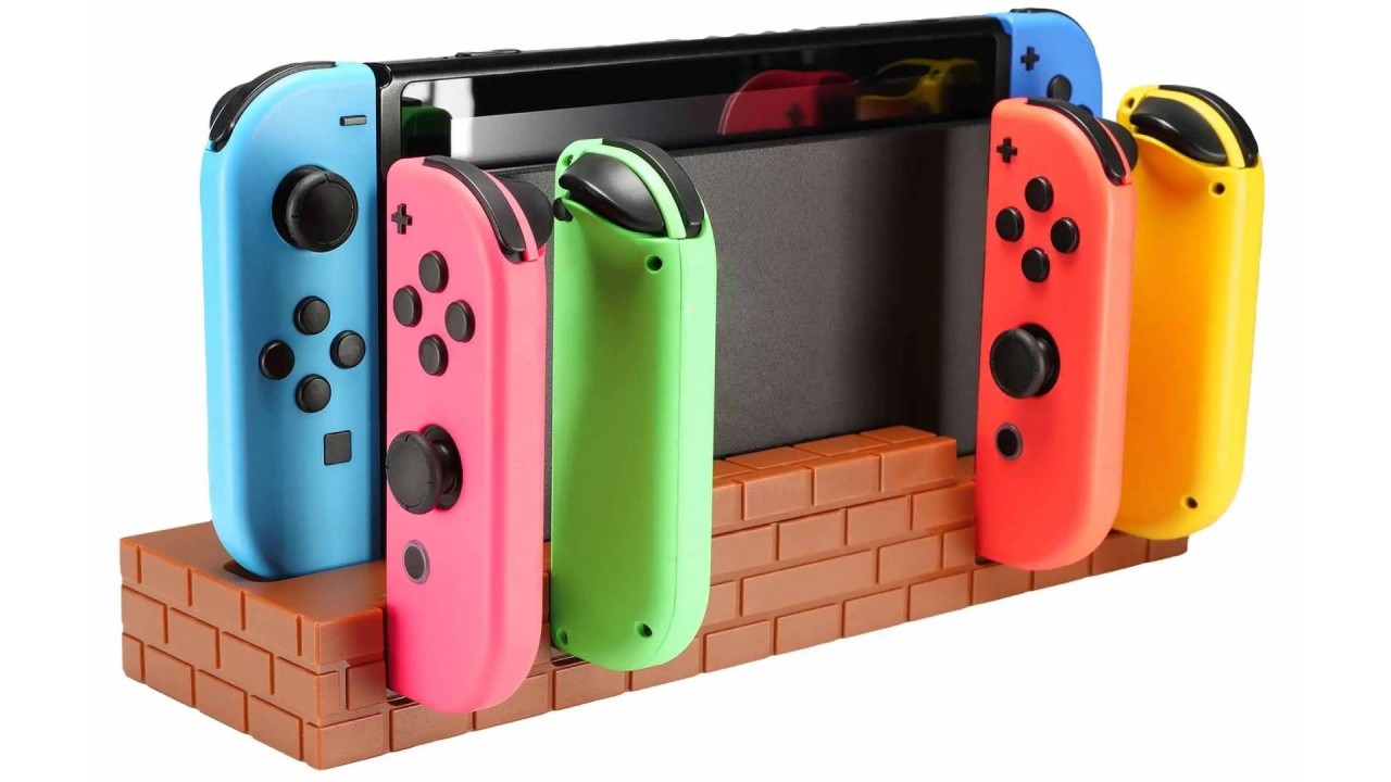 Depozitul pentru Switch este conceput să stocheze până la 6 Joy-Cons și 8 cartușe de jocuri. Puteți încărca 2 Joy-Cons pe consolă și 4 pe depozit, astfel încât să nu ratezi nicio ocazie de a juca un joc.