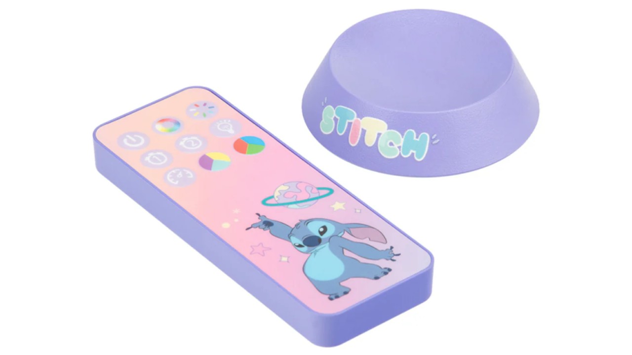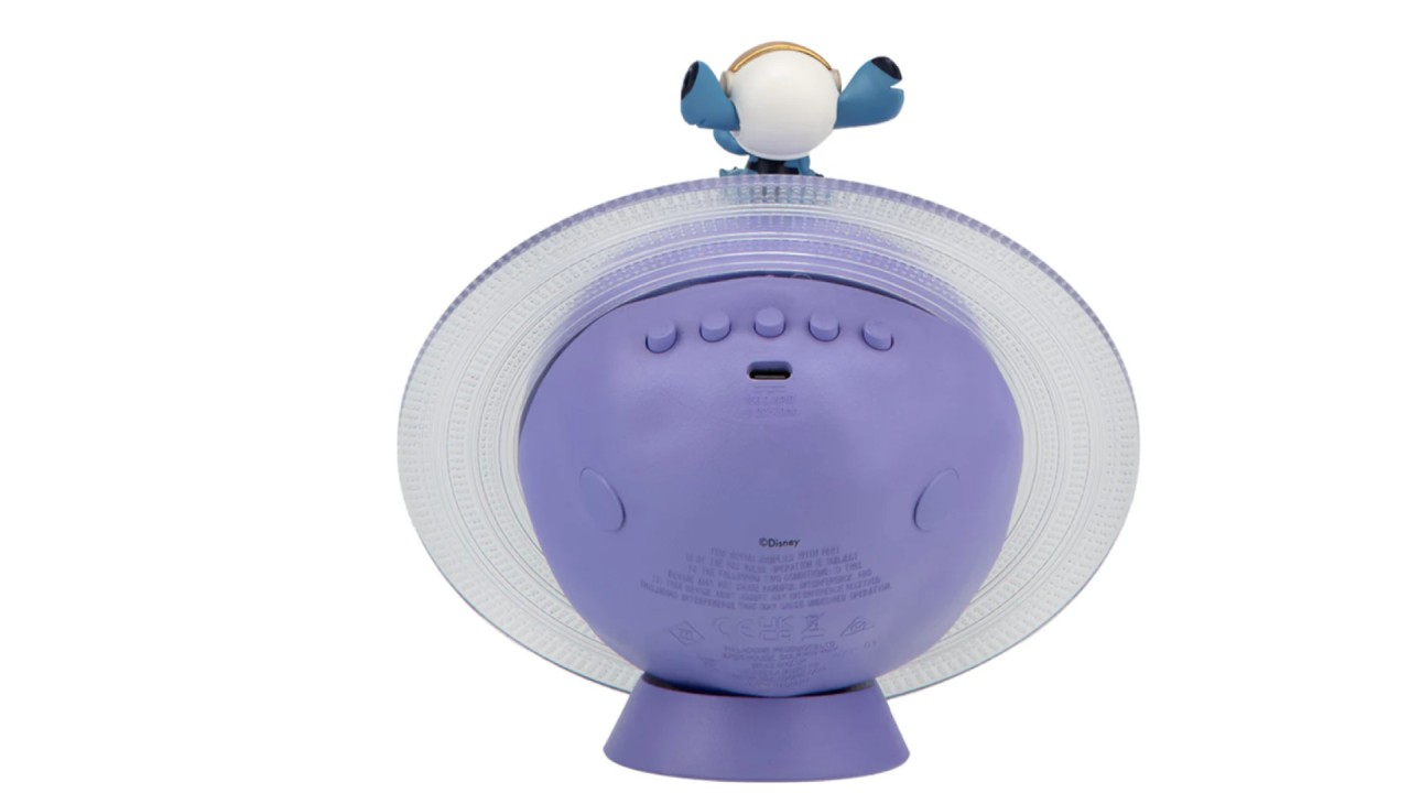 This magical galactic projection lamp features Stitch in a space helmet, perched on a planet, ready to fill your space with soothing, colorful projections.