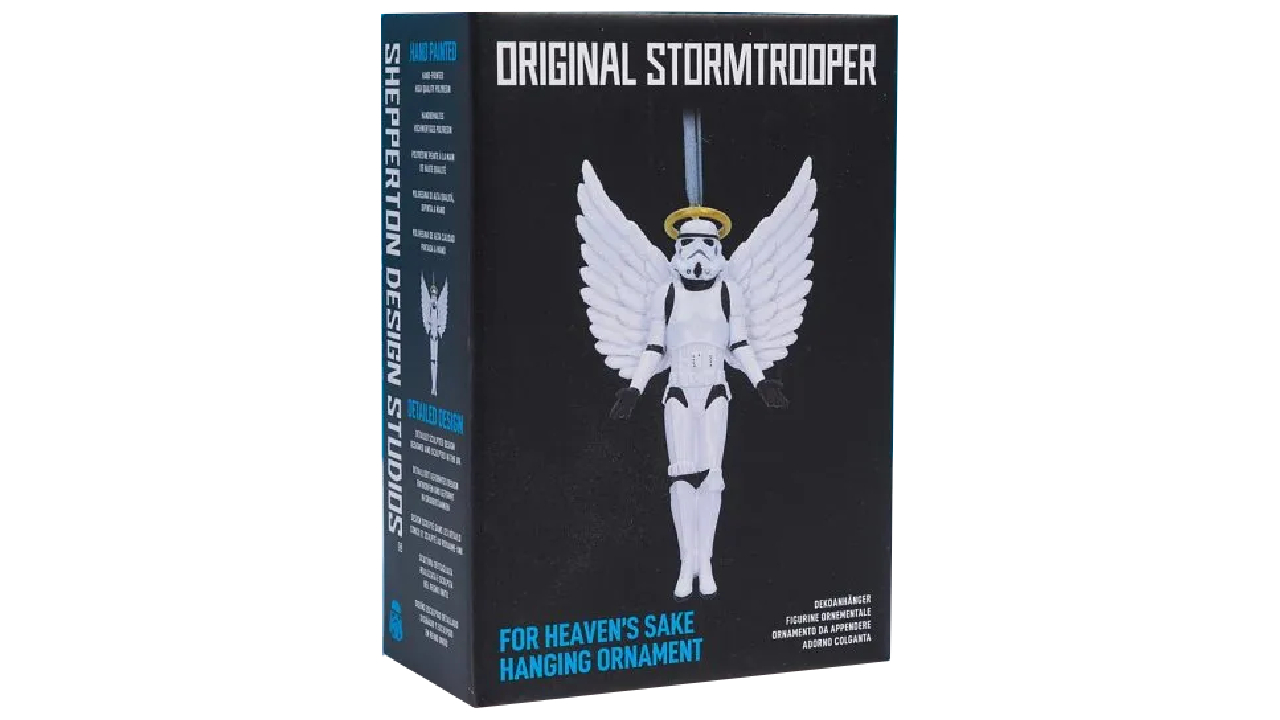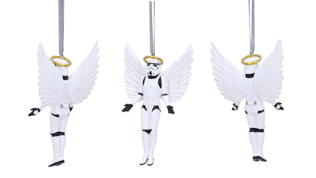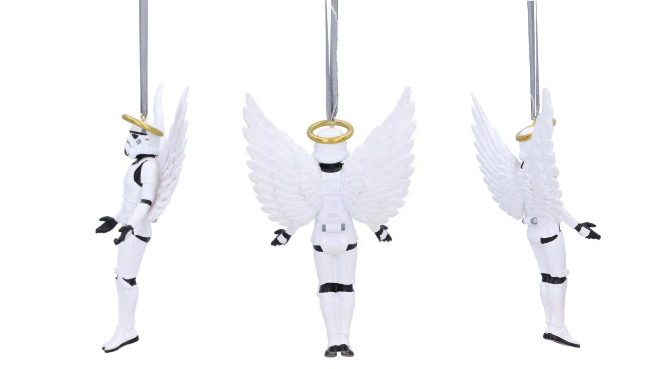 - Descrierea produsului: Cu toate că Stormtrooperii sunt departe de a fi ființe angelice, această decorațiune unică înfățișează unul dintre ei într-o formă angelică. Această decorațiune este perfectă pentru a fi agățată pe pomul de Crăciun în acest sezon festiv.
