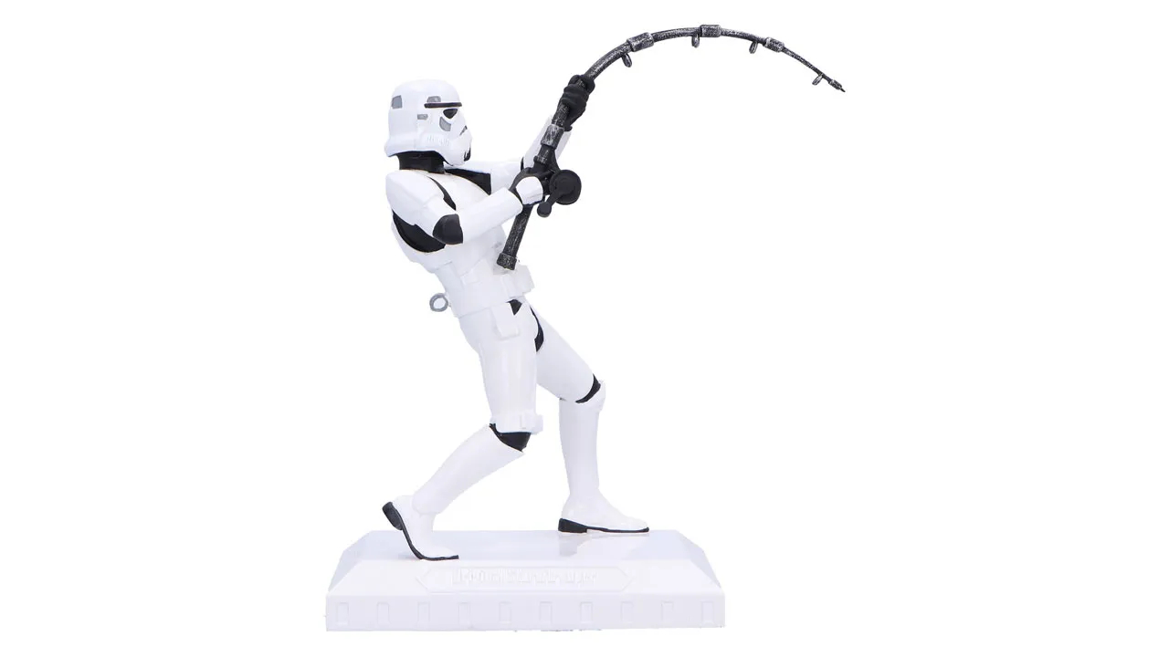 Turnată în rășină de înaltă calitate, figurina What a Catch înfățișează un Stormtrooper original care își ține și își trage cu pricepere undița de pescuit, gata să își recupereze ultima captură.