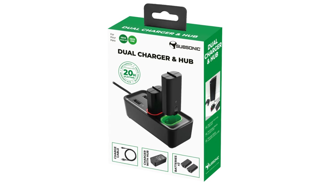 The Subsonic Dual Charger & Hub for Xbox Series X/S is an accessory that allows you to charge two Xbox controllers simultaneously.
