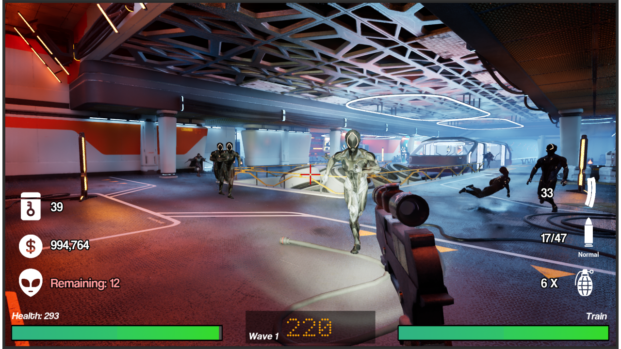 As the invasion intensifies, so does the challenge. Earn points by eliminating enemies and upgrade your weapon with powerful attachments like scopes, flashlights, and thermal sights. Unlock devastating sub-weapons such as grenades, fortify key areas by locking doors, and strategize your defence against increasingly cunning alien foes. Some will charge straight at you while others target the train’s defences, forcing you to multitask and make split-second tactical choices.