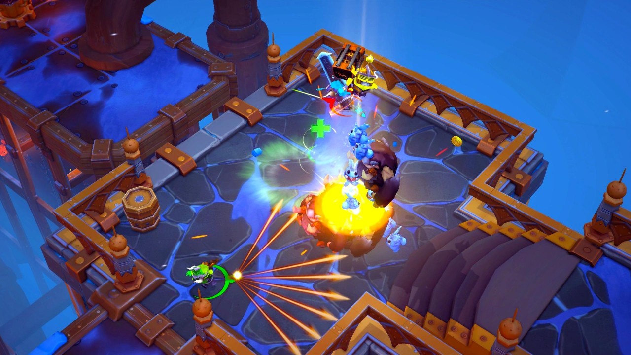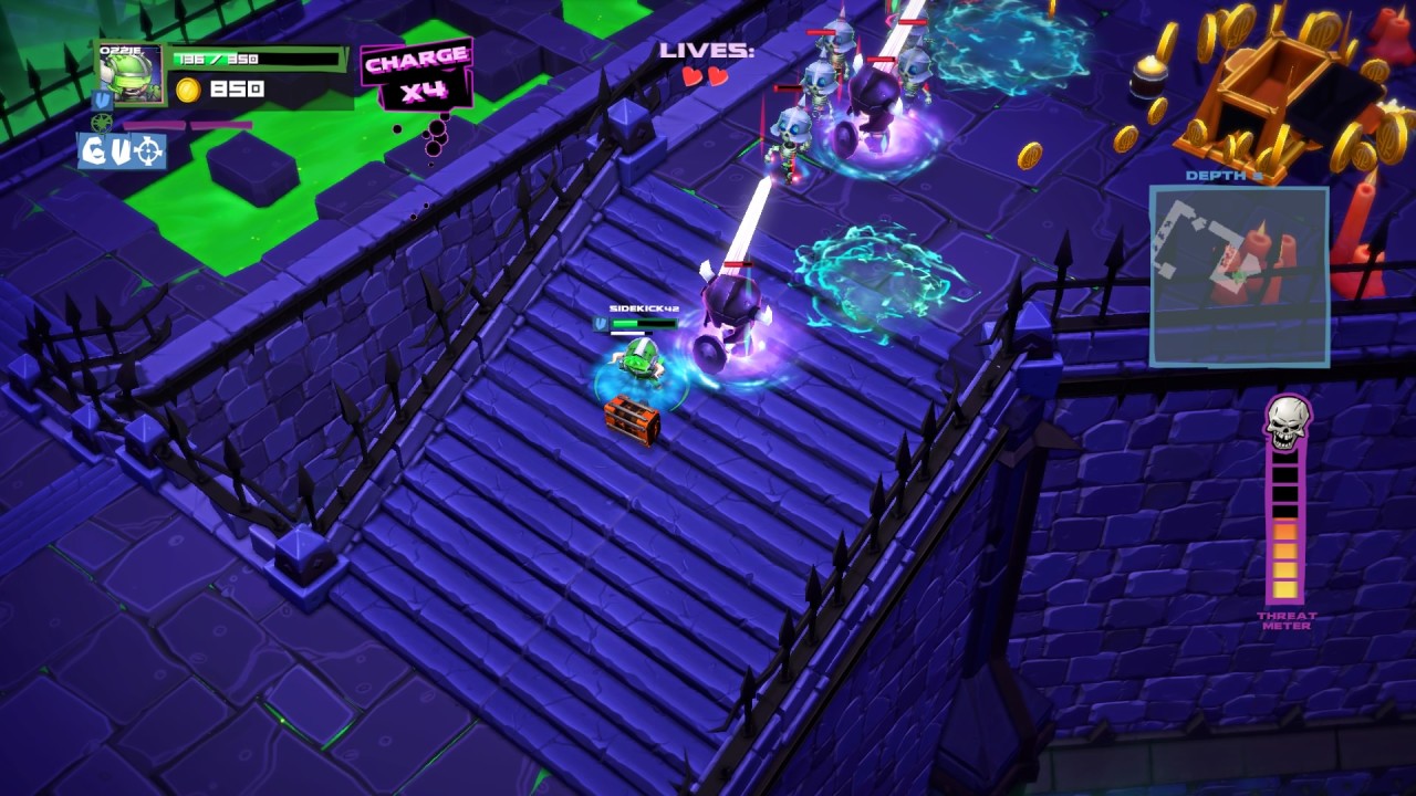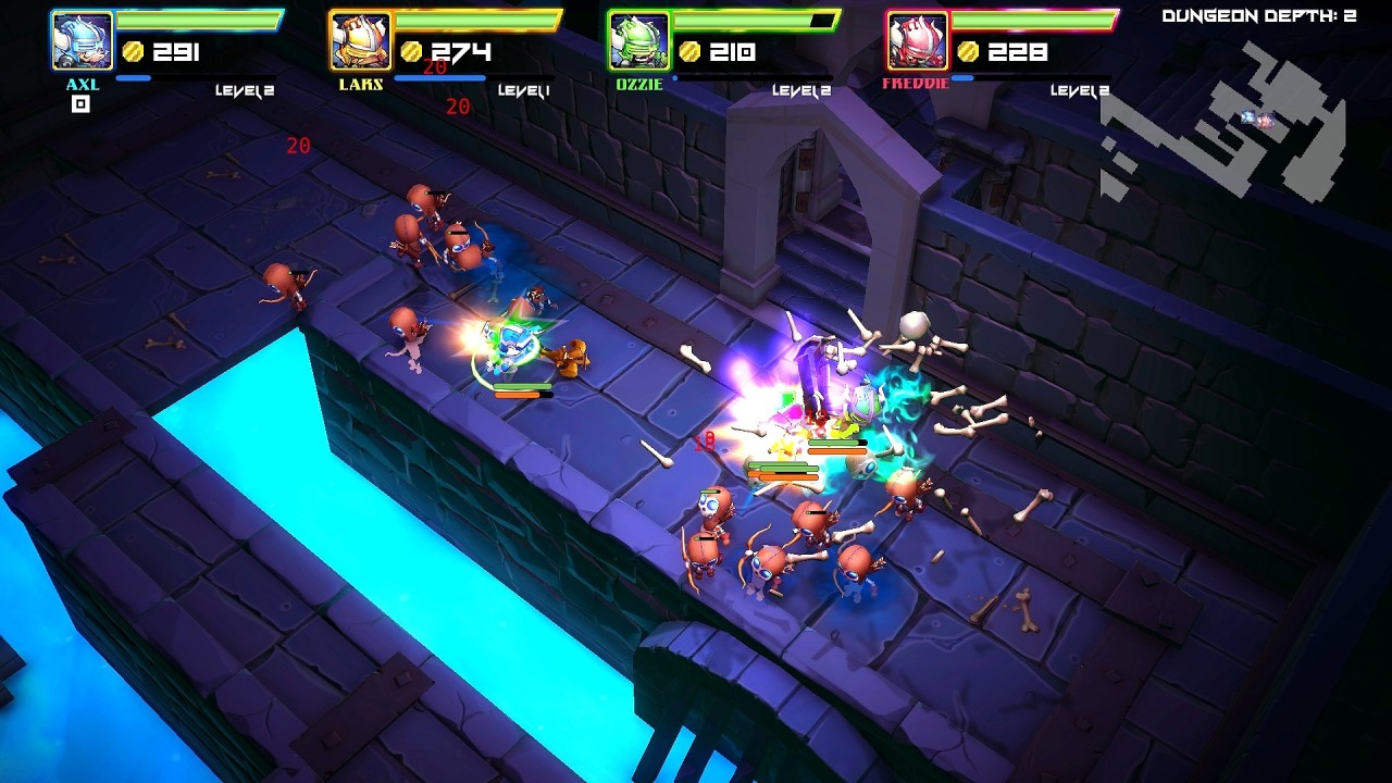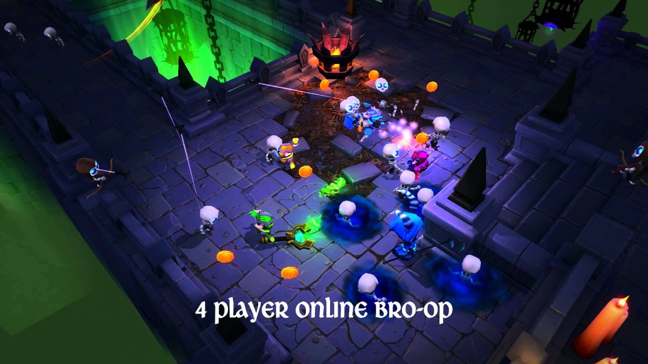 Abonamentul PS Plus este necesar pentru a juca online (abonament vândut separat). Îmbarcă-te într-o misiune de la zeii rockului cu eroii heavy metalului Axl, Lars, Freddie și Ozzie în Super Dungeon Bros, un joc rapid, concentrat pe acțiune, cu temă rock.