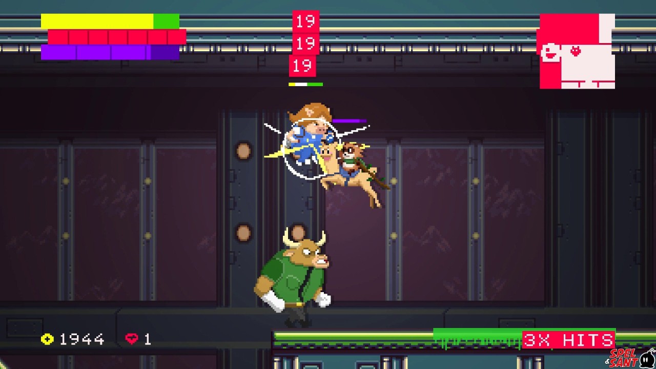 The game is restless and fast, the exploration and combes based on combo being the favorite weapons against the evil regnantcorp!