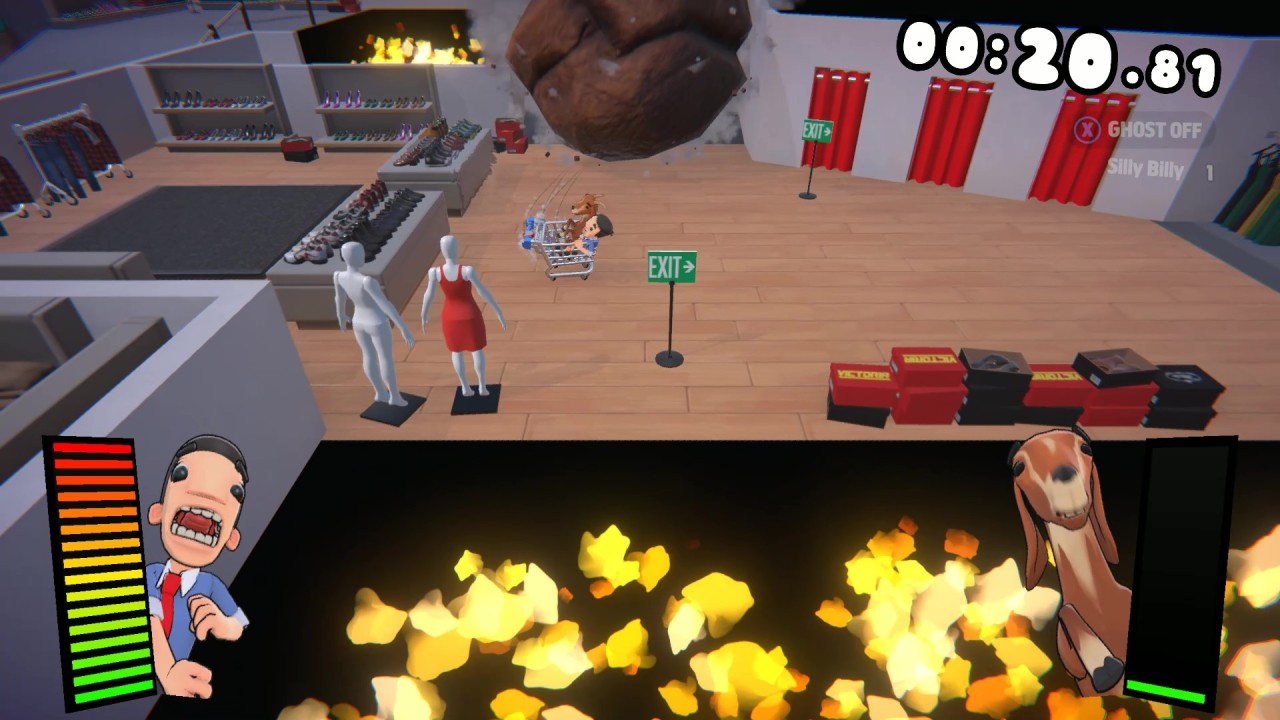 Join man and goat in this chaotic, award-winning couch-co-op adventure! Tackle outlandish obstacle courses, complete rewarding challenges and dodge deadly obstacles in a hectic race to the checkout! Packed with a frantic 38 stage campaign and 3 hilariously fun PvP party modes for 2-8 players.