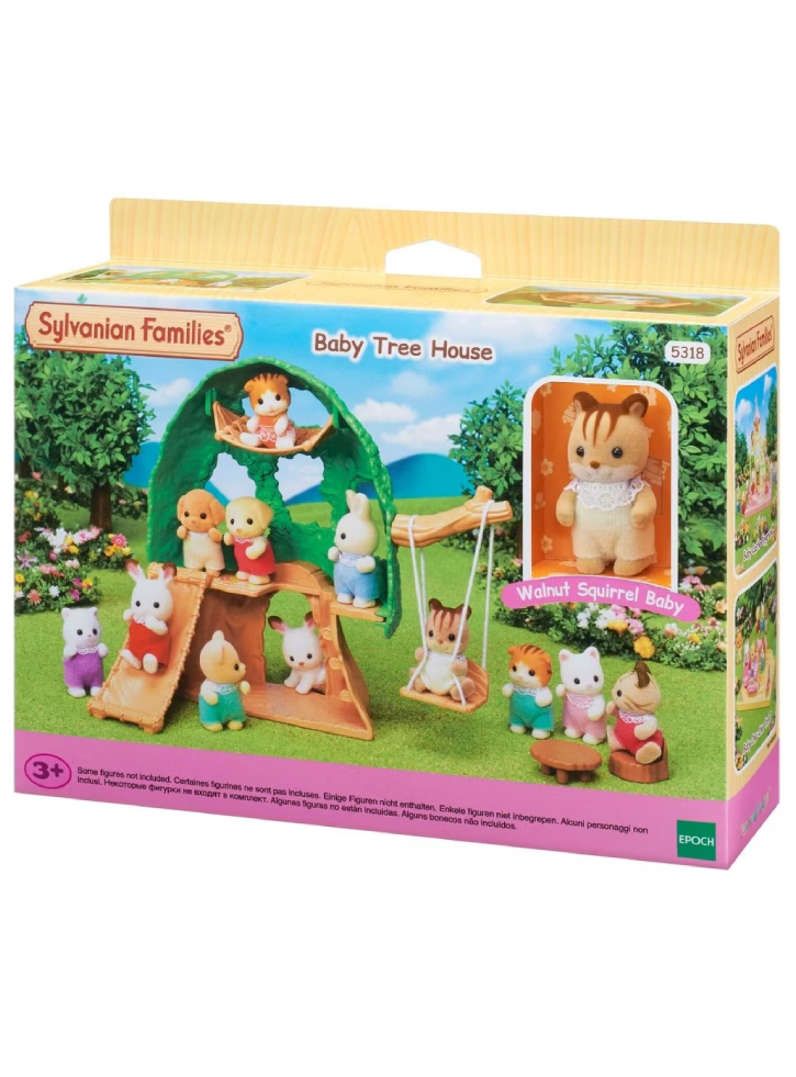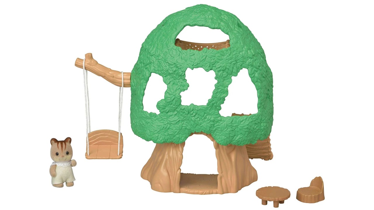 The baby tree house includes a baby squirrel and a cute wooden playroom.