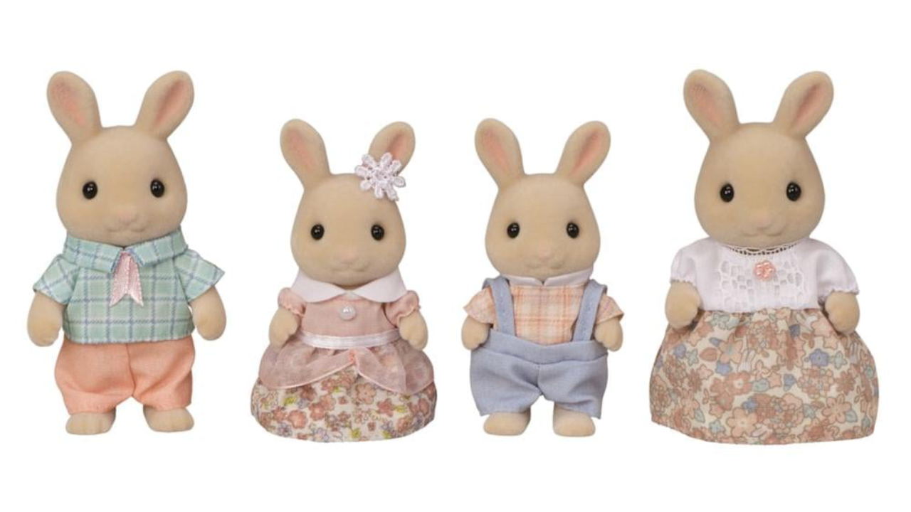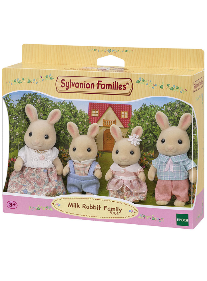 Acest set include tatăl, mama, băiatul și fetița Milk Rabbit.