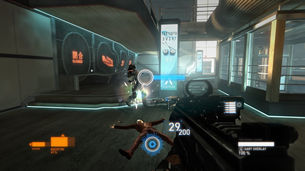- Folosiți un arsenal îmbunătățibil de arme futuriste, armuri și urechi pentru a vă anihila inamicii și a le recolta tehnologia cipurilor pentru avansare personală și lăcomie corporatistă sinistră.