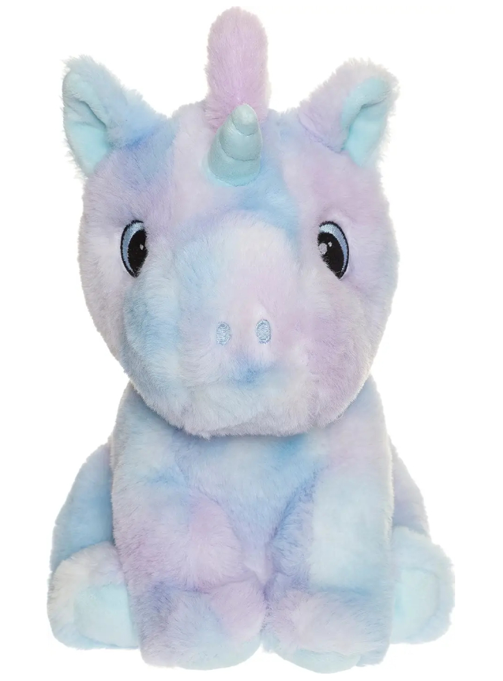 Acest unicorn colorat în nuanțe pastelate de violet și albastru este un companion minunat pentru joacă și îmbrățișări.