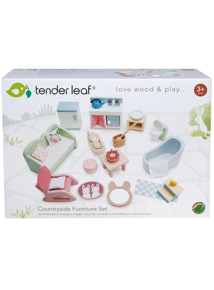 Setul de mobilier din lemn Countryside Doll este un set perfect de mobilier și accesorii din lemn care va încânta fiecare copil.