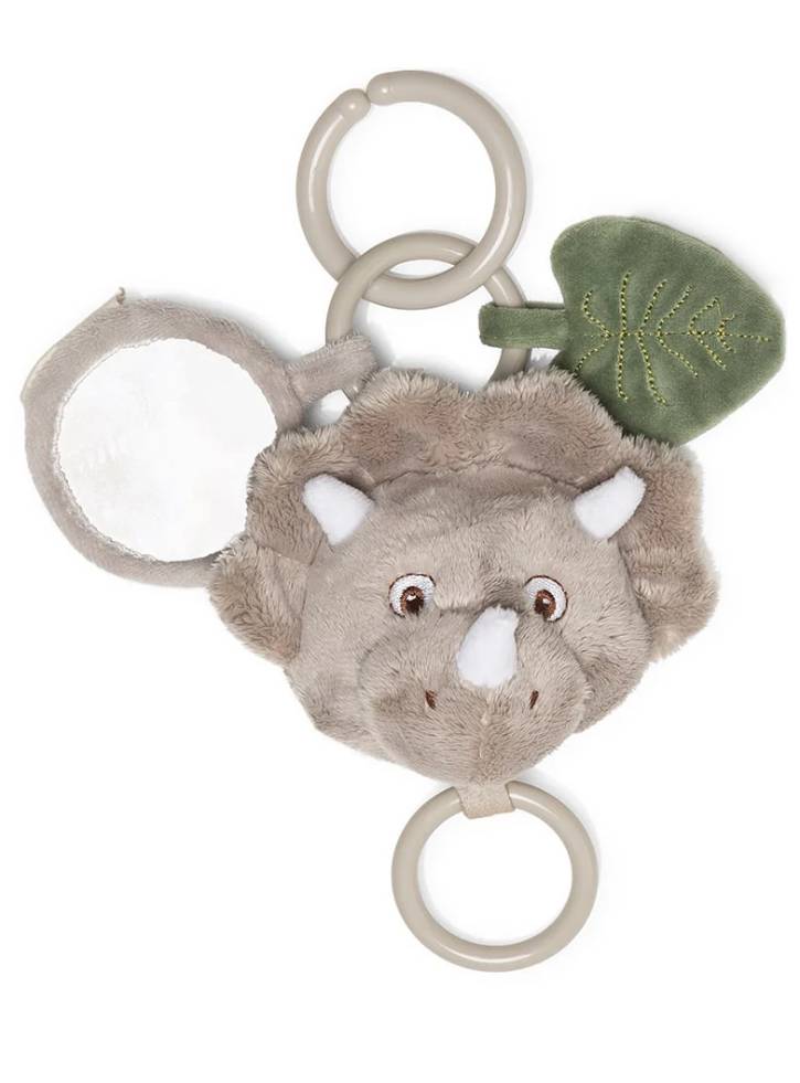 Jucăria de activități este proiectată cu un inel C, ceea ce o face mai ușor de atașat la un pătuț, un suport de activități, un scaun de mașină sau alte locuri unde poate fi utilizată.