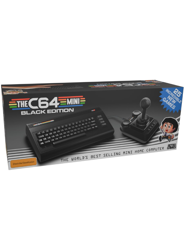 O recreare glorioasă, la jumătate de dimensiune, a iconicului C64, într-un finisaj negru uimitor, 25 dintre cele mai apreciate jocuri noi.