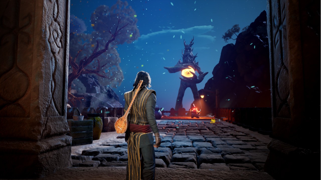 The prince flees his homeland with little but the clothes and the sitar slung on his back. This instrument is the last source of music in the lands and his only weapon against the darkness. The magical sounds of its strings can bring life back to the land. But that's only the first step. Shahbaz must face platforming challenges at dizzying heights, environmental puzzles demanding mastery of the elements, and finally, himself.