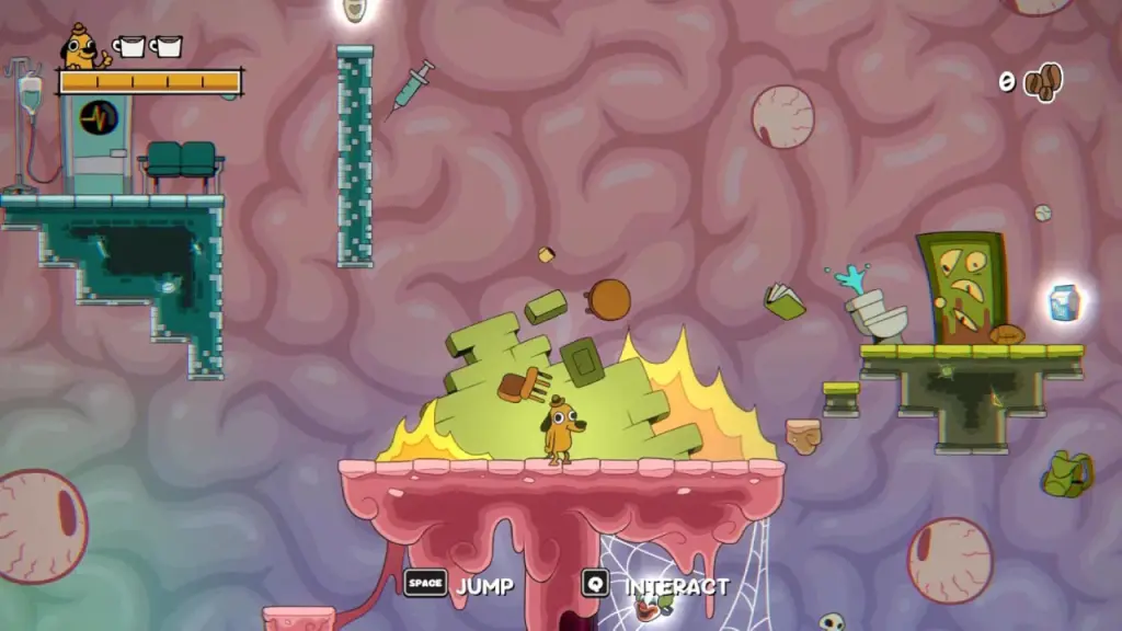Colectează boabe de cafea în timp ce explorezi; moneda ta este folosită pentru a cumpăra avantaje și a-ți reumple ceașca de cafea vindecătoare.
