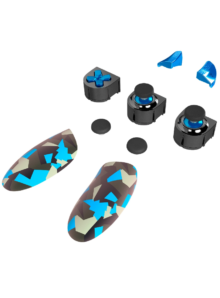 Conținute: 2 declanșatoare ergonomice texturate albastre în stil Xbox, 1 modul D-pad albastru cu 4 direcții, 2 ministicks mari NXG albastre cu articulații metalice și capace detașabile, 2 capace convexe suplimentare pentru ministicks, 2 mânere de cauciuc ultramoale în camuflaj albastru, 1 cutie pentru depozitare.