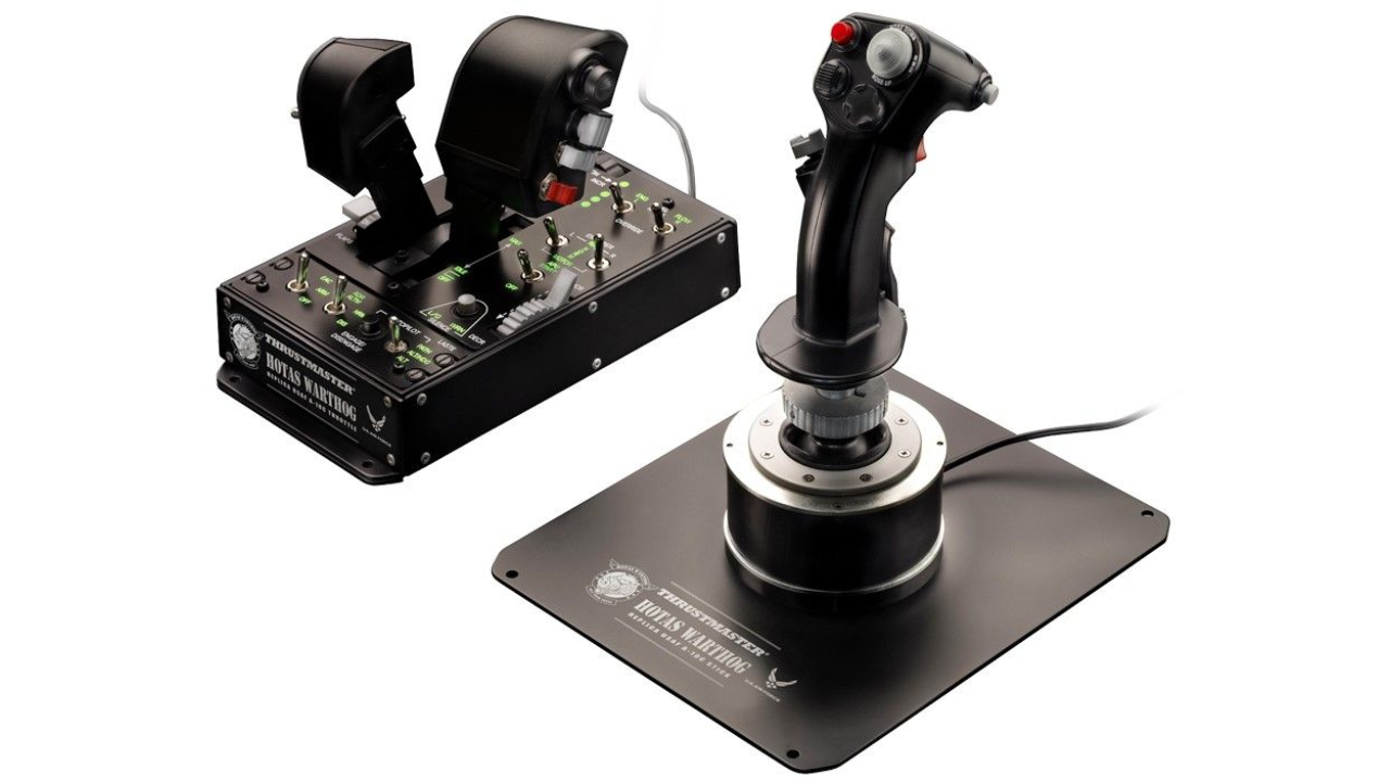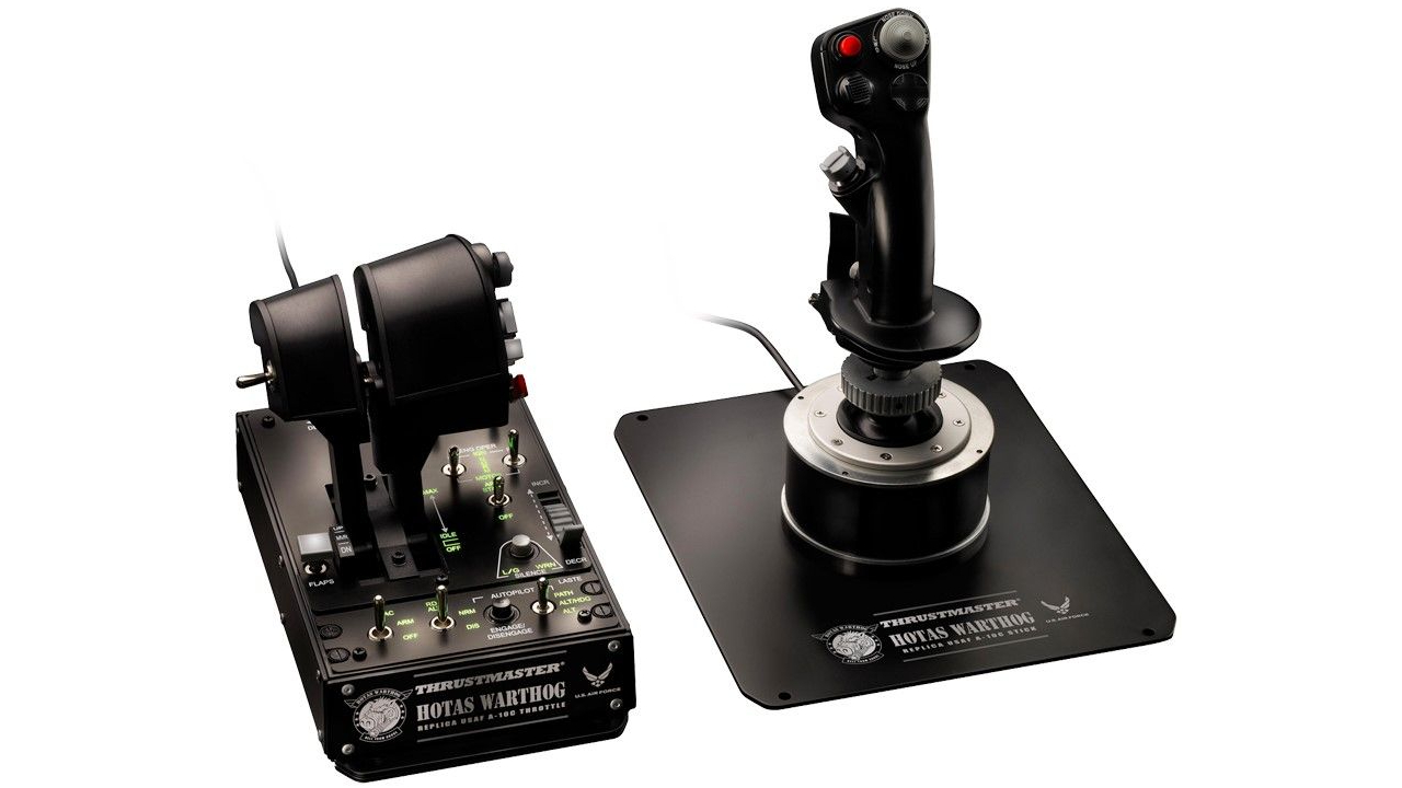 Official replicas of the joystick, throttle and control panel of the US Air Force A-10C aircraft.