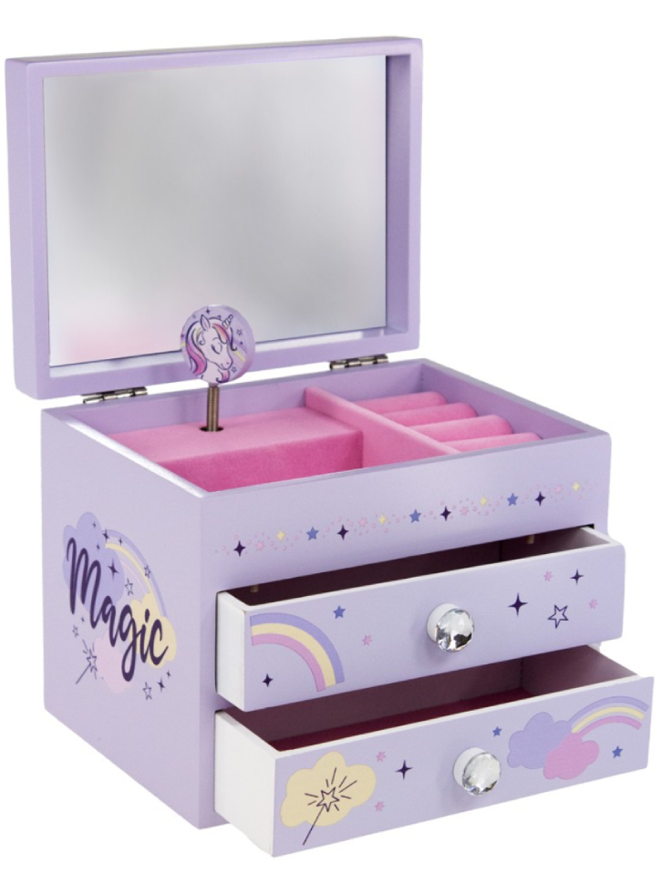 Cutia este alegerea perfecta pentru copilul tau, aceasta are două sertare cu spațiu pentru bijuterii și alte comori fine.