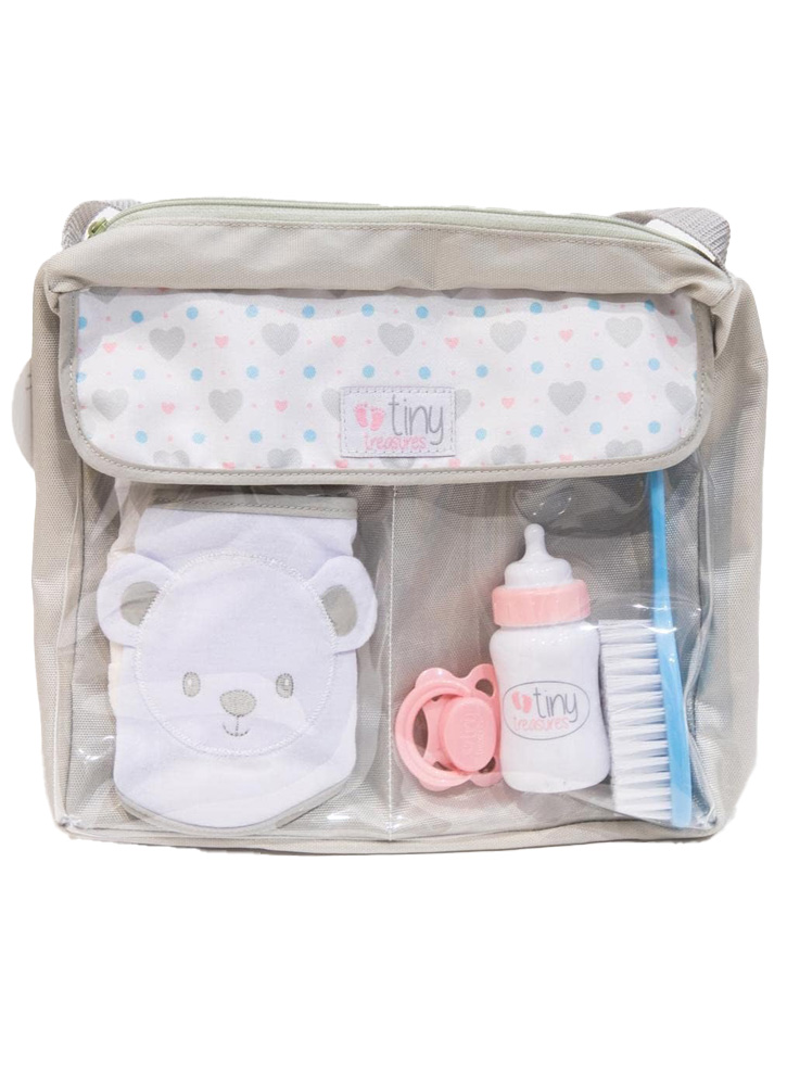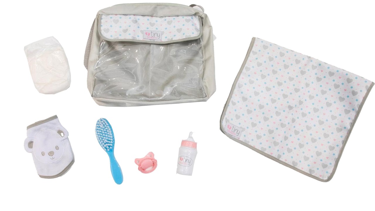 Accesoriu perfect pentru păpușa ta Tiny Treasures! Acest set special conține tot ceea ce ai nevoie pentru a avea grijă de noul bebeluș al tău.