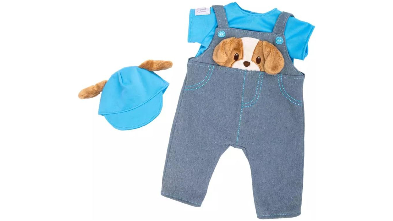 Tinuta include, de asemenea, un tricou albastru moale și o pălărie albastră super drăguță asortată cu urechi maro moi, care va face păpușa ta să arate exact ca un cățeluș jucăuș.