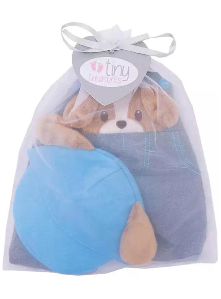 Outfitul Little Paws Puppy este conceput pentru a fi folosit cu o păpușă Tiny Treasures de 44 cm.