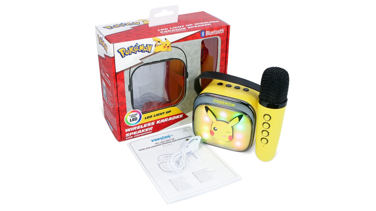 Conceput pentru fanii Pokémon de toate vârstele, acest set de karaoke wireless și portabil aduce muzică, emoție și farmecul energic al lui Pikachu la fiecare spectacol.