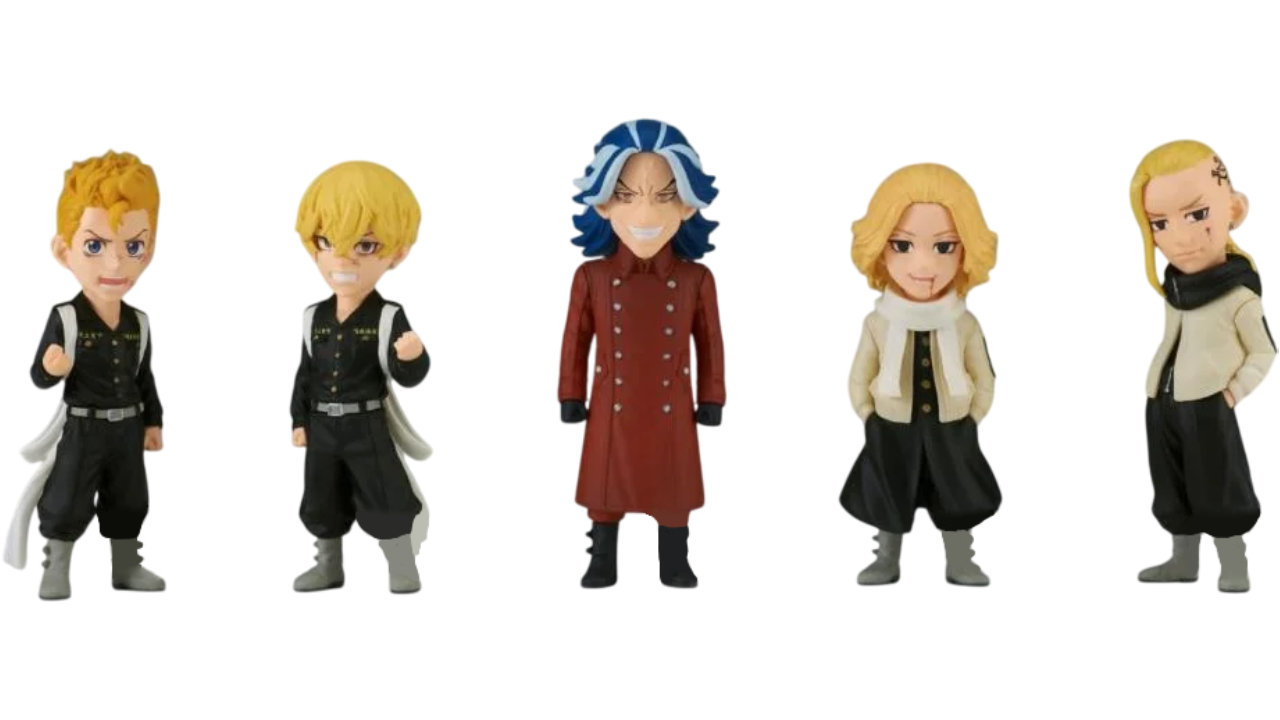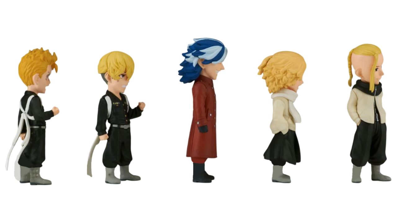 The characters included in this collection are: Manjiro Sano, Takemichi Hanagaki, Ken Ryuguji, Chifuyu Matsuno, Taiju Shiba.