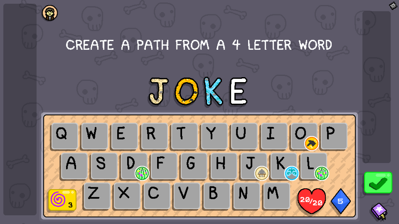 At the start of each floor, you’ll craft a word to form your path. Choose between rooms that strengthen your arsenal, restore your health, or twist your Magick rerolls. You can have it all… if your vocabulary is sharp enough to forge it.