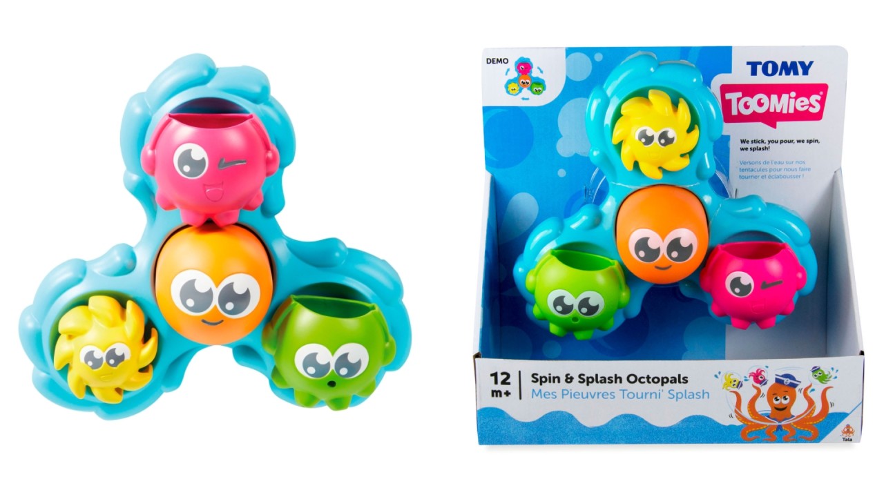 Lipește suportul cu caracatițele pe gresie și umple animalele cu apă pentru ca distracția să înceapă.