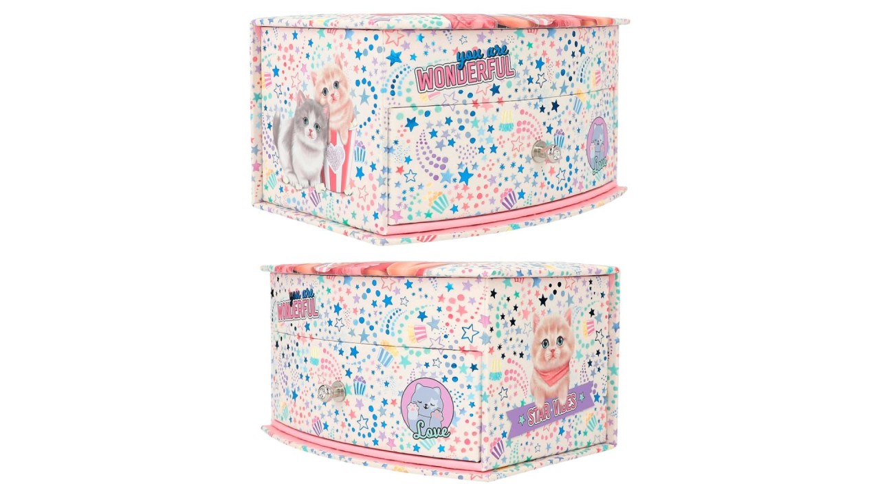Cutia mică de bijuterii TOPModel Cutie Star cu o stele super drăguțe peste tot, pictograme popcorn amuzante, pisicuțe drăguțe și un model elegant imprimat.