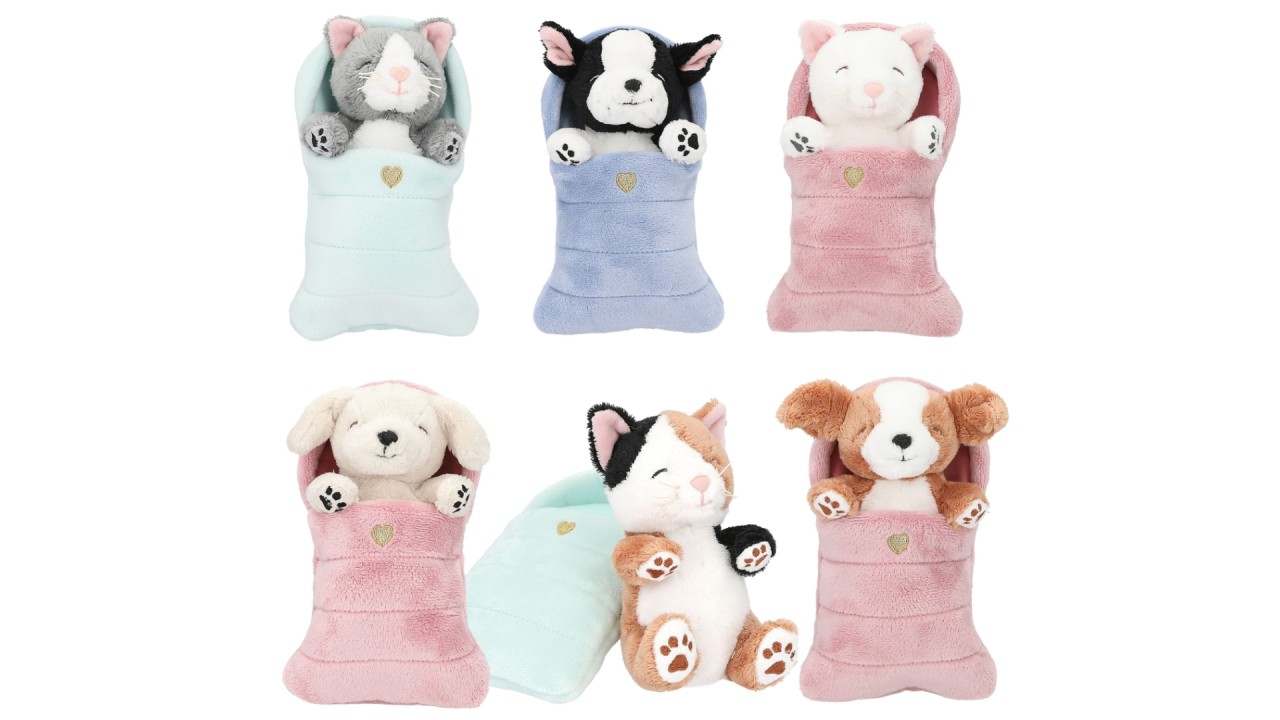 Descoperiți încântarea ursuleților de pluș TOPModel, perfect cuibăriți în sacii lor de dormit confortabili.