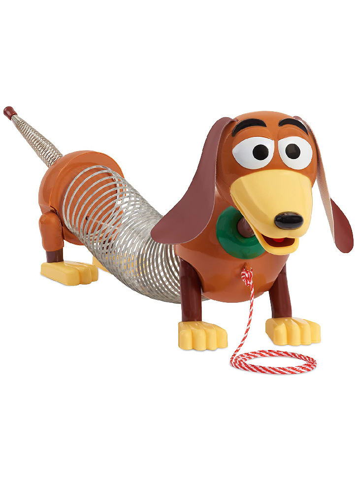 Trage-l pe Slinky Dog din Toy Story și privește-l cum se întinde. Această jucărie amuzantă Slink Dog se mișcă și se zvârcolește în timp ce îl tragi pe podea cu ajutorul șnurului atașat.
