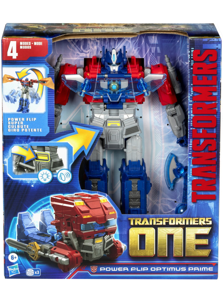 Experimentati originile epice ale robotilor legendari Transformers cu aceasta figura de actiune Transformers One Power Flip Optimus Prime, inspirata de personajul iconic din filmul Transformers One.