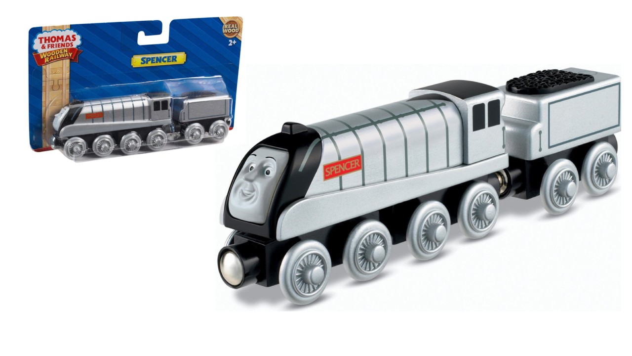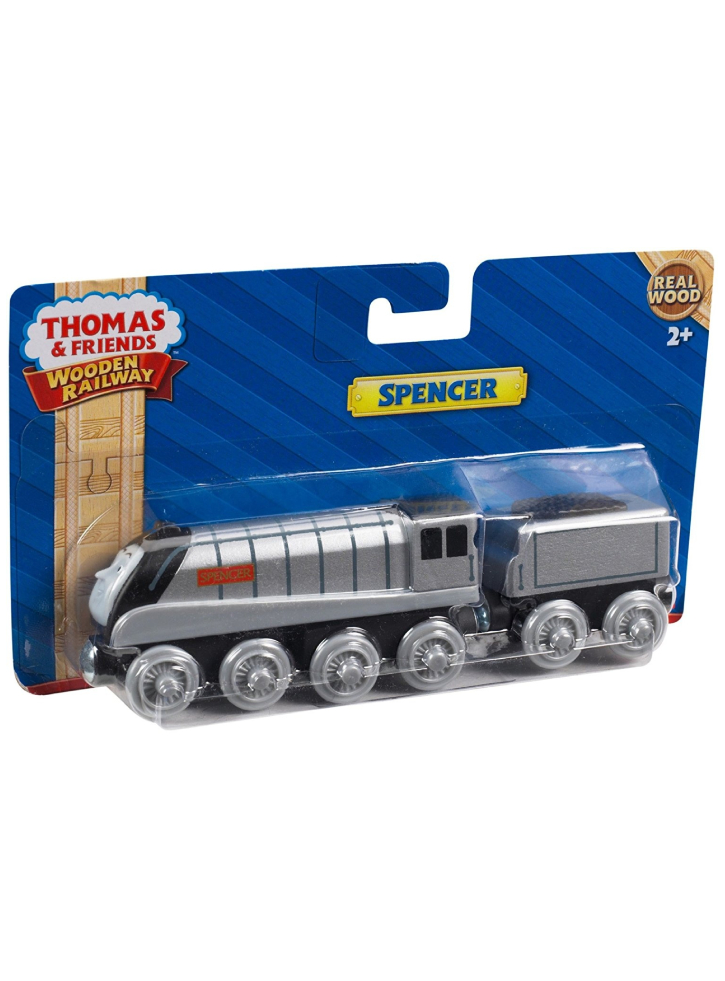 Spencer este dotat cu magneți la capete, astfel încât să poată fi conectat cu ușurință la alte locomotive și vehicule din gama Wooden Railway.