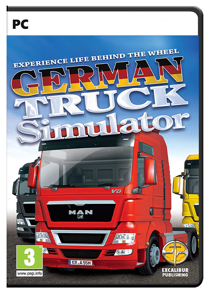 Simulator german de camioane PC nou și în stoc CDRom importat din Marea Britanie pentru utilizare la nivel mondial pentru a intra în cabina șoferului și a roti cheia de contact pentru a începe o cursă în vehicule grele.
