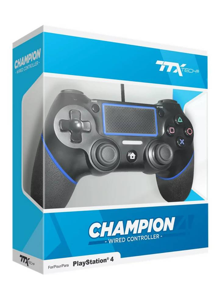 Controlerul cu fir TTX Tech Champion Wired Controller pentru PlayStation 4 dispune de o dispunere a butoanelor cu 4 fețe, configurare plug-and-play.