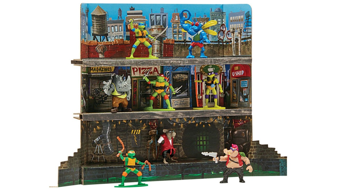 Grafică de marcă și scene din filmul Mutant Mayhem Playmates toys este sediul tău de jucării Teenage Mutant Ninja Turtles.