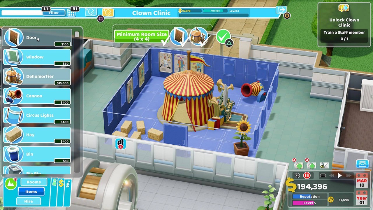 Optimizează-ți designul spitalului pentru a crește fluxul de pacienți (și de numerar), aranjând coridoarele, camerele și zonele de așteptare conform specificațiilor tale exacte.